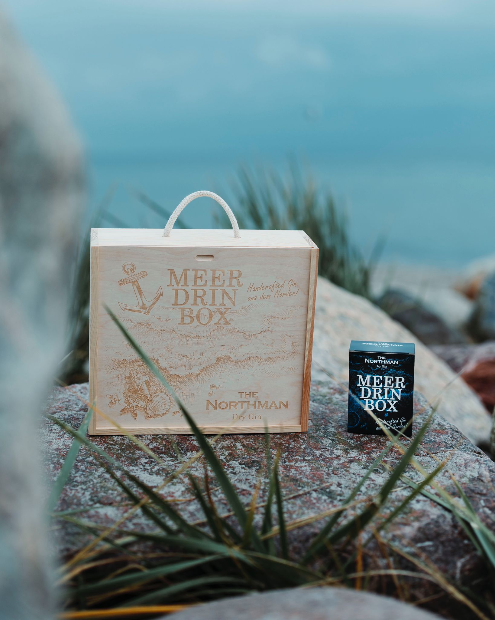 Dein #northmanmoment... mal salzig, mal rauchig, mal frisch. Aber immer 100% handcrafted.Unsere neue MEER DRIN BOX ⚓ - das ideale Geschenk für Küstenliebhaber oder aber eine schöne Möglichkeit, sich den Norden ins Heim zu holen.Das Set besteht aus einer tollen Holzbox, die mit einem maritimen Motiv verziert ist, und enthält gleich beide The Northman Gins. Mit "Calm Sea" und "Smoky Breeze" bringen wir euch die vielen verschiedenen Facetten des Nordens in Form von Gin und norddeutsch schlichtem Design Nachhause und ins Glas. Und damit ihr gleich Ideen bekommt, wie ihr den Norden in seiner puren Form auch in Cocktails genießen könnt, liegen zwei edle Barcards mit je einem Rezept dabei.Unsere Gins sind zu 100% handcrafted und werden von uns selbst in unserer kleinen Produktion an der Ostsee in Schleswig-Holstein destilliert und abgefüllt. Neben Qualität ist uns Authentizität wichtig, sodass jede Flasche von uns, Lars oder Claas, persönlich nummeriert und signiert wird.Den Norden und das Meer zum Verschenken oder Nachhause holen. Probiert es aus!Set-Inhalt: The Northman MEER DRIN Holzbox im tollen DesignThe Northman Dry Gin „Calm Sea“ (500ml, 38,8 % Vol.)The Northman Dry Gin „Smoky Breeze“ (500ml, 38,9 % Vol.)2 edle THE N Barcards mit CocktailrezeptGeschmack & Botanicals:The Northman "Smoky Breeze"Der geräucherte Malabar Pfeffer sorgt für ein perfektes Zusammenspiel von leichten Rauchnoten und angenehmer Schärfe. Zitronenschale und heimischer Kombu Royal (Zuckertang) ergeben eine meerige Frische und lassen zusammen mit weiteren Bontanicals einen spannenden Gin entstehen, der an die frische Brise des Nordens und seine Räucherprodukte erinnert. Neuer Look, aber bewährter Geschmack! Wir haben unseren "Smoky Breeze" farblich seinem puren, einzigartigen Geschmack angepasst und die Buddel komplett neu gestaltet. Dieser nordische, schlichte Stil ist genau das, was unseren Smoky Breeze ausmacht - denn diesen Gin kann man pur genießen! Getreu unserem Motto: Wer Meer hat, braucht weniger.The Northman "Calm Sea"Eine leichte Zitrusnote gepaart mit einer Prise Rosmarin verfeinert das Aroma der Wacholderbeere. Leichte Nuancen des Kombu Royal (Zuckertang) verleihen dem Gin das besondere Etwas und die milde, meerige Frische des Nordens. Weitere Botanicals runden das Geschmacksbild ab und machen The Northman zu einem Gin für jeden Anlass:Lecker mit Tonic oder im Cocktail, aber am Besten pur zu genießen.